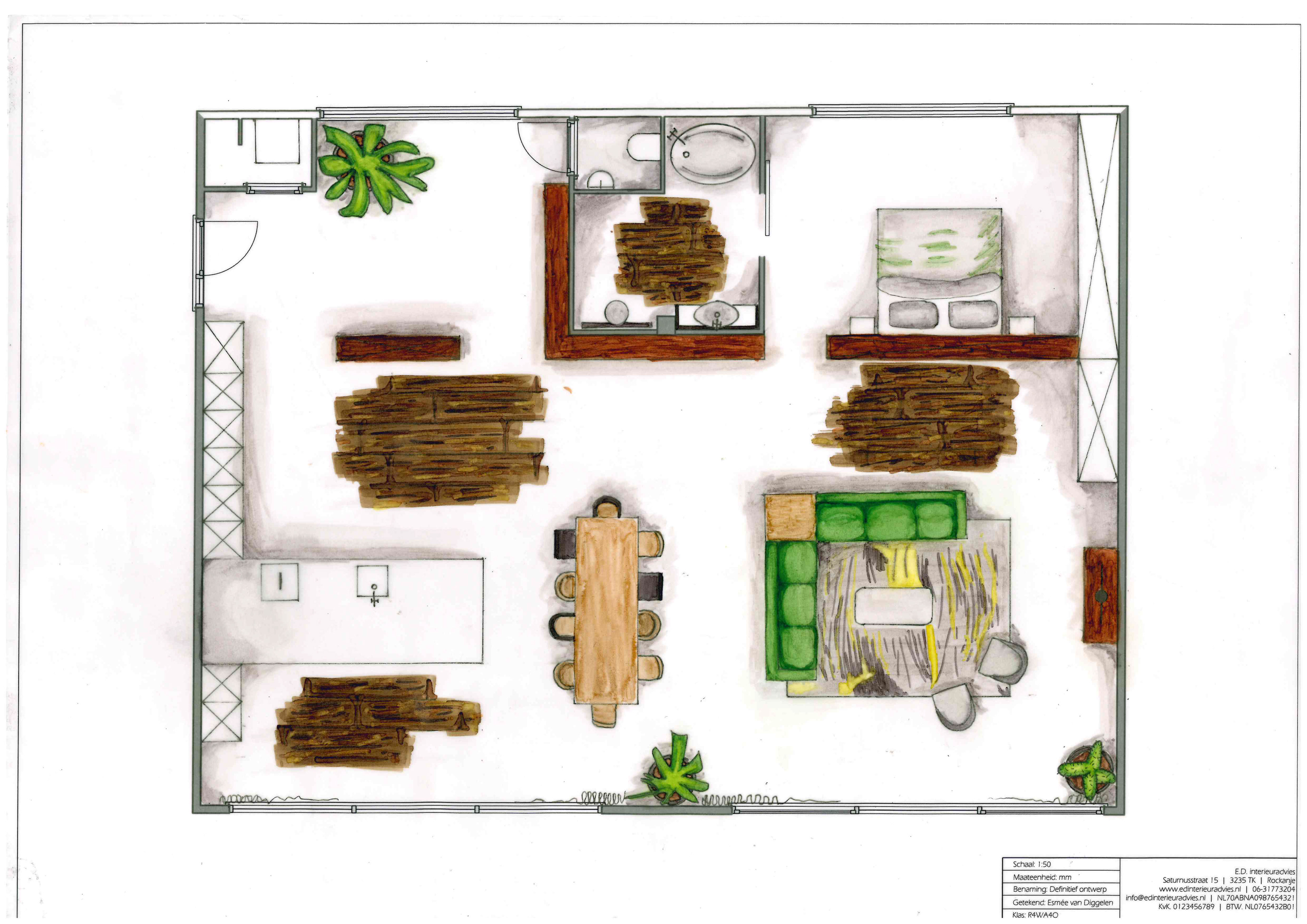 Het idee wat ik heb is om de bewoners een botanisch en stoer interieur te geven, maar het niet te druk laten worden en het een huiselijk gevoel te geven. Daarnaast moet er in het interieur ook naar voren komen dat het een school is geweest. Verder moet het ontwerp slim en helder bedacht zijn en eenvoudig maar uiterst effectief.